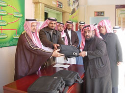 ضمن الخطط التنفيذية لمشروع الملك عبد الله لتطوير التعليم سلم المدير العام للتربية والتعليم للبنين بمنطقة نجران علي بن جابر الشمراني أمس 588 حاسباً آلياً محمولاً لطلاب ثانوية الملك فهد، بحضور أولياء الأمور وعدد من التربويين المشرفين على المشروع.