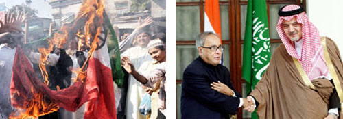 وتزامناً مع هذا التوتر الشديد نقل سمو وزير الخارجية إدانة خادم الحرمين الشريفين الملك عبدالله بن عبدالعزيز وحكومة وشعب المملكة للأعمال الإرهابية التي شهدتها مدينة مومباي بالهند مؤخراً وذلك خلال لقاءاته أمس مع مستشار الأمن القومي نارا يانان, ووزير الخارجية براناب مو كير جي ووزير الدولة للشؤون الخارجية آي أحمد ونائب رئيس جمهورية الهند محمد حامد أنصاري. كما أعرب سموه عن التعازي في الضحايا معبراً عن موقف المملكة الذي يدين الإرهاب بكل أشكاله وصوره.