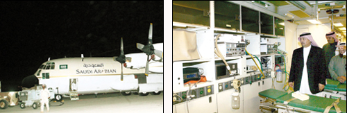 وأوضح معاليه في تصريح لوكالة الأنباء السعودية أن الطائرتين تحملان على متنهما كوادر طبية، ومجهزتان بأحدث الوسائل لنقل المصابين الذين يحتاجون إلى عناية فائقة بما يضمن سلامة نقلهم إلى مستشفيات المملكة واستكمال علاجهم فيها. وتشارك فرق وكوادر طبية من هيئة الهلال الأحمر السعودي في استقبال ونقل المصابين والجرحى الفلسطينيين من مطار العريش إلى مستشفيات المملكة.
