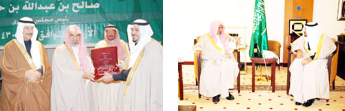 من جهة ثانية شهد صاحب السمو الملكي الأمير فيصل بن مشعل بن سعود نائب أمير منطقة القصيم بحضور معالي مدير جامعة القصيم الدكتور خالد بن عبدالرحمن الحمودي ومعالي رئيس هيئة الرقابة والتحقيق الدكتور صالح بن سعود العلي محاضرة معالي رئيس مجلس الشورى إمام وخطيب الحرم المكي الشريف الدكتور صالح بن عبدالله بن حميد بعنوان (مجلس الشورى مسيرة وإنجاز) والتي ألقاها في جامعة القصيم بمبنى الإدارة العامة بمدينة بريدة ظهر أمس الأربعاء 3-1-1430هـ وقد حضر المحاضرة وكلاء الجامعة والعمداء وأعضاء هيئة التدريس ومديرو الإدارات وجمع غفير من الطلاب والمدعوين كما تم النقل مباشرة لقسم الدراسات الطلابية حيث شارك عضوات هيئة التدريس من النساء والطالبات من الكليات وشاهدن المحاضرة منقولة بالصوت والصورة وقد تحدث معاليه في بداية المحاضرة والتي أدارها معالي مدير الجامعة عن مجلس الشورى (مسيرة وإنجاز).