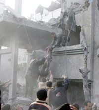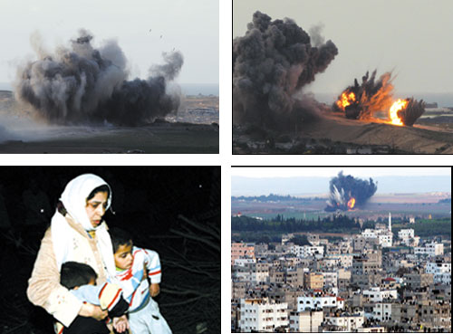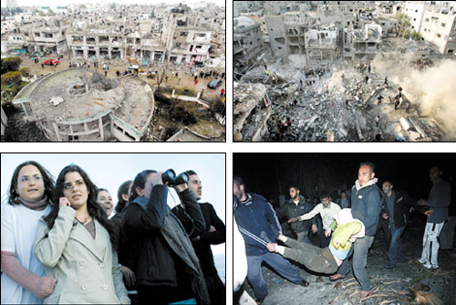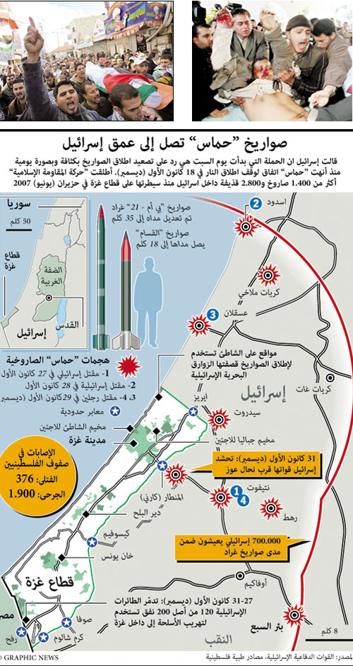 قصفت طائرات حربية إسرائيلية مباني حكومية في قطاع غزة في الساعات الأولى من أول أيام العام الميلادي الجديد بعد أن رفضت إسرائيل وحركة المقاومة الإسلامية (حماس) نداءات بوقف إطلاق النار لإنهاء الهجمات الإسرائيلية على القطاع التي أدت حتى الآن إلى استشهاد