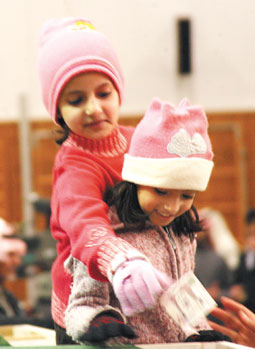 طفلتان تتسابقان ببراءة للتبرع.. وذلك ضمن الحملة الشعبية التي أمر بها خادم الحرمين لنصرة أهالي غزة. |