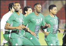إلى ذلك أدى جميع اللاعبين مناورة اتسمت بالقوة والندية والحماس بين اللاعبين امتدت أربعين دقيقة عمد خلاله الجوهر إلى ايجاد التشكيل الأنسب لدخول غمار مباراة الافتتاح والهجوم الضاغط منذ البداية، ووضح اعتماد الجوهر على كل من وليد العبدالله وأمامه خط دفاع مكون من أسامة هوساوي ورضا تكر وعبدالله الزوري وراشد الرهيب وفي الوسط خالد عزيز وعبده عطيف وسعود كريري وأحمد عطيف وفي خط المقدمة ياسر القحطاني ومالك معاذ ويرجح أن يكون نايف هزازي والعمري وعبدالله شهيل أبرز الأوراق الرابحة. هذا وقد أكملت سفارة خادم الحرمين الشريفين في السلطنة من تقديم التذاكر والإعلام السعودية لبعض المواطنين المتواجدين في مسقط ووفرت لهم ناقلات تنقلهم من وإلى الملعب.