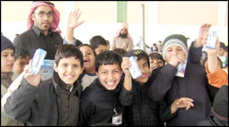 نفذت مدرسة الإمام الشوكاني الابتدائية في محافظة المذنب وبمتابعة من مديرها ناصر بن محمد الحواس برنامج اليوم الوطني لشرب الحليب بمشاركة ودعم من بعض شركات الألبان، بحضور مدير مركز الإشراف التربوي في محافظة المذنب بالإنابة سليمان بن عبدالله الطعيسي، حيث تم توزيع عبوات الحليب على جميع طلاب المدرسة وشارك المعلمون طلابهم في هذا اليوم الصحي، وكانت الفرحة والسعادة بادية على محيا الجميع.