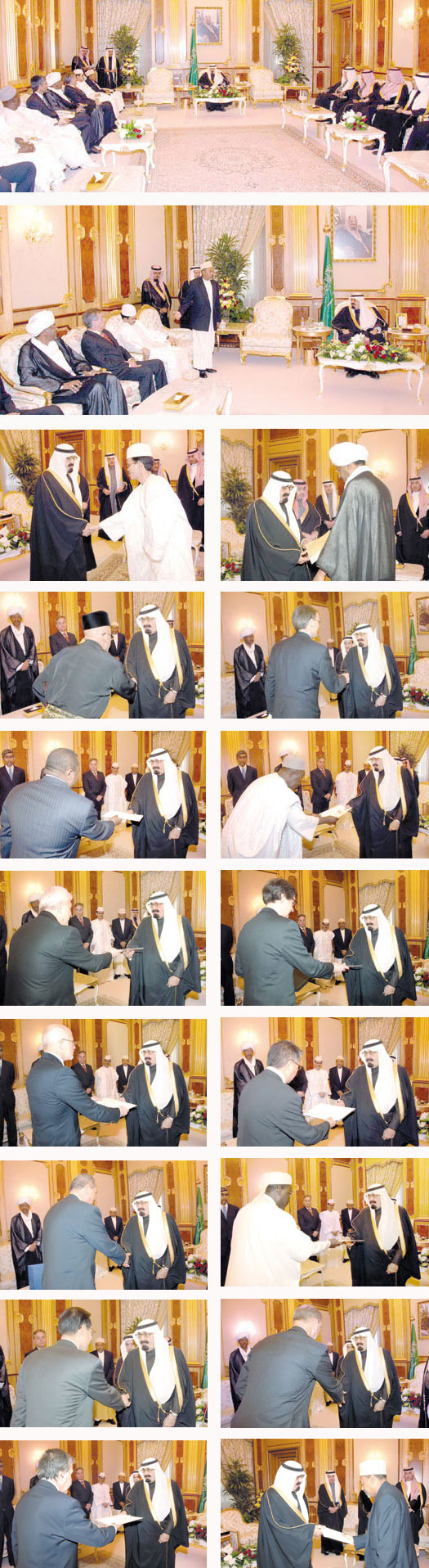تسلم خادم الحرمين الشريفين الملك عبدالله بن عبدالعزيز آل سعود -حفظه الله- بالديوان الملكي بقصر اليمامة أمس أوراق اعتماد عدد من سفراء الدول الإسلامية والصديقة سفراء معتمدين لدولهم لدى المملكة العربية السعودية، فقد تسلم -حفظه الله- أوراق اعتماد كل من سفير جمهورية القمر المتحدة