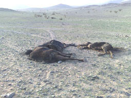 فوجئ المواطن ثابت بن حمدان النفيعي بنفوق سبعة من إبله في مركز الحفنة جنوب غرب البجادية. وقد أوضح أن إبله كانت تأكل من العشب ونباتات الأرض التي نبتت عقب تساقط الأمطار مؤخراً، وقال إنه لم يعطها إلا شيئاً يسيراً من أعلاف الشعير، مؤكداً أنها كانت كمية لا تكاد تذكر.وقال النفيعي إنه أبلغ فرع الزراعة بالدوادمي بما حدث، وأضاف أن الفرع أرسل مندوبين منه أكثر من مرة وأخذوا عينات من دم الإبل النافقة، لكنه قال إنه لم تظهر نتائج التحاليل. وتحسَّر قائلاً: ما زالت أسباب نفوق إبلي غامضة.