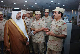 قام صاحب السمو الأمير الدكتور خالد بن فيصل بن تركي آل سعود وكيل الحرس الوطني للقطاع الغربي صباح الأحد بزيارة لمركز القيادة والسيطره لتمرين (عز الوطن) بالقطاع الغربي الذي تنفذه وحدات الحرس الوطني بالقطاع. وكان في استقبال سموه بمقر قيادة التمرين مساعد وكيل الحرس الوطني للقطاع الغربي للشؤون العسكرية اللواء الركن نايف بن غازي الشويب وأركانات التمرين. وفي بداية الزيارة استمع سموه إلى إيجاز عام من قبل الضباط المشاركين بالتمرين حيث استعرض ركن إدارة العمليات الواجبات الموكلة إليه في هذا التمرين، ثم قدم مدير إدارة الاستخبارات ومدير إدارة شئون الأفراد ومدير الإمداد والتموين ومدير إدارة العلاقات العامة إيجازاً عن فعاليات التمرين وما احتوى عليه من الفرضيات اللازمة للتدريب. بعد ذلك تجول سموه على أقسام الخلايا المنفذة للتمرين في مركز القيادة والسيطرة بالقطاع واستمع سموه من الضباط المسئولين عن تلك الخلايا لشرح عما تقوم به وحداتهم المشاركة من الأعمال والواجبات المندرجة ضمن مسؤولياتهم. بعد ذلك اطلع سموه على نماذج من الأنظمة والوسائل التي تساعد على تنفيذ التمرين بالشكل الذي يحاكي الواقع الأصلي، ومن ضمنها الاتصال المرئي المباشر الذي يربط القيادات برئاسة الحرس الوطني بالرياض مع باقي الوحدات والقيادات المشاركة في كل من القطاعين الغربي والشرقي. الجدير بالذكر إن تمرين (عز الوطن) ينفذه الحرس الوطني على مستوى مناطق المملكة وذلك لرفع كفاءة وجاهزية وحدات الحرس الوطني.