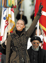 المغنية الأمريكية بيونسية خلال حفل موسيقي أقيم الأحد لمناسبة تولي أوباما مهامه الرئاسية وحضره مئات الآلاف من الأشخاص وشارك فيه عدد كبير من النجوم في موقع نصب لنكولن الرمزي في واشنطن |