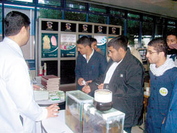وتابع الطلاب شرح الفنيين في المعرض، الذين عرضوا أجزاءً بشرية صناعية مصابة بأمراض التدخين، وقارنوها بأجزاء أخرى غير مصابة، لمعرفة الفارق بين المدخن وغير المدخن، ولحث المدخنين رجالاً ونساءً على ترك هذه العادة في أسرع وقت، وتعرفوا أيضاً على الأضرار التي يسببها التدخين سلوكياً ونفسياً، وقد شهد البرنامج إقبالاً كبيراً من أوساط طلاب الكلية وأعضاء هيئة التدريس، وتم توزيع المواد التوعوية المختلفة مثل المطويات والأشرطة ومفكرة الأعمال ومجلة النقاء، والتقويم السنوي، ونسخ لأقراص فيلم (عواقب التدخين).