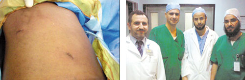 وترأس الفريق الطبي الأستاذ المساعد بكلية الطب استشاري الجراحة الدكتور سامي النصار وكذلك استشاري جراحة الصدر الدكتور وسيم حجار، واستشاري الأشعة التداخلية الدكتور تركي الفهيد، واستشاري التخدير الدكتور أحمد الثلاج.