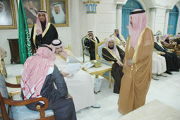 وكان سموه قد استقبل بصالة الاستقبال الكبرى بقصره بمدينة سكاكا مساء الأحد جموعاً من المواطنين، واستمع لشكاواهم ومطالبهم، بحضور رئيس محاكم منطقة الجوف الشيخ زياد بن محمد السعدون والشيخ نايف زايد الزايد ووكلاء إمارة المنطقة ومديري الدوائر الحكومية وقادة القطاعات العسكرية.