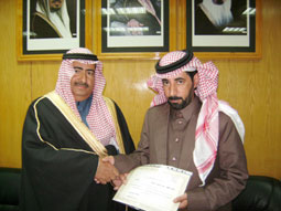 الجوف - أحمد الحجاج: قام محافظ دومة الجندل المكلف كساب بن عبدالله المويشير صباح أول أمس بتسليم أحد منسوبي المحافظة الموظف عيد حمدان الشنوان شهادة شكر وتقدير لما قام به من خلال إبلاغه عن رشوة حاول أحد العمالة الوافدة تقديمها له.