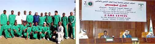 على هامش مشاركته في منتدى التنافسية الدولي الثالث الذي اختتم يوم أمس بمدينة الرياض قام البطل العالمي وأسطورة ألعاب القوى السابق كارل لويس بزيارة لمقر الاتحاد السعودي لألعاب القوى التقى خلالها بسمو الأمير نواف بن محمد رئيس الاتحاد وأعضاء مجلس الإدارة..وقام بعدها بحضور تمرين المنتخب السعودي الأول لألعاب القوى بمعهد إعداد القادة..ووصل به الحماس والإعجاب إلى أن يشرف بنفسه على التمرين ويوجه اللاعبين ويقضي وقتاً أكثر مما هو مخطط له ولكن على حساب وقت المؤتمر الصحفي الذي عقده بعد ذلك بمقر اللجنة الأولمبية السعودية وبحضور الأمير نواف بن محمد الذي رحب في بدايته بزيارة السيد كارل لويس للمملكة شاكراً الهيئة العامة للاستثمار التي دعته وأتاحت الفرصة لاستثماره رياضياً وبما يعود على اللاعبين السعوديين بالنفع والفائدة.