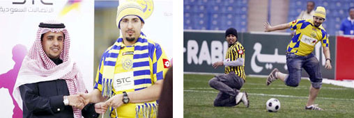 حمل لاعبو فريقا النصر والاتحاد قبيل انطلاق مباراتهما البارحة كرات تحمل شعار شركة الاتصالات السعودية stc وقدموها للحاضرين من ذوي الاحتياجات الخاصة ولمشجعي الناديين.