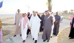 كما اطلع على الحديقة التي تقوم ارامكو لأعمال الخليج بإنشائها وعلى شارع الملك عبدالعزيز الذي سيتم إعادة تأهيله قريبا واستمع لشرح مفصل عن مراحل مشروع محطة تصريف مياه الأمطار الأولى والثانية والثالثة والرابعة وأثنى على الواجهة البحرية التي يجري العمل بها داعياً أهالي المنطقة للاستفادة من خدماتها مع المحافظة عليها من العبث.