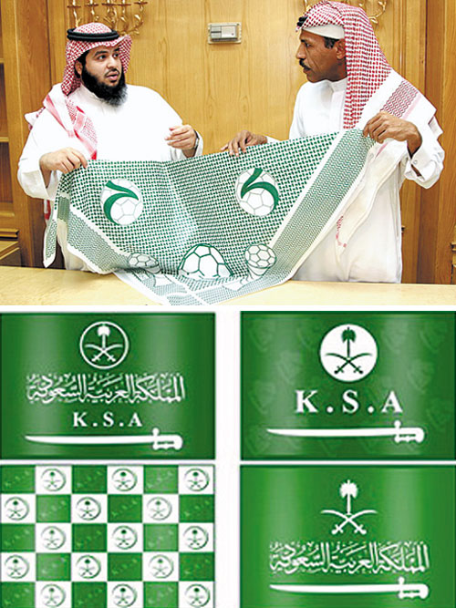 وأوضح سموه أن فكرة الأعلام الرياضية جاءت تزامنا مع فكرة الشماغ الرياضي؛ إذ شرعت في تصميم عشرة تصاميم لعلم سعودي سواء رياضيا أو للمناسبات والاحتفالات الطلابية ليحصل به المراد مع خلوه من لفظ الجلالة احتراما لكلمة التوحيد المعظمة المقدسة من أن تسقط على الأرض أو أن تمتهن ولو بغير قصد، لافتا إلى أن المصانع الوطنية مقدمة على غيرها في تصنيع الأعلام الرياضية ولاسيما أننا نلمس ولله الحمد جودة ومتانة في الصناعات الوطنية العاملة في مجال الأعلام.