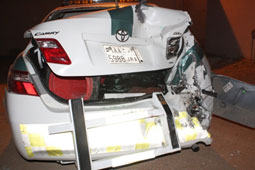 نفى مدير وحدة مرور الأفلاج النقيب محمد بن مقبل العتيبي وجود أي شبهة جنائية في حادث السير الذي تعرضت له إحدى دوريات المرور أثناء توقفها عند إشارة مرورية على طريق الملك عبد العزيز الرئيسي بليلى، مبيناً أن سائق السيارة الجيب التي اصطدمت بدورية المرور كان يقود سيارته وهو في حالة غير طبيعية.. وكانت سيارة الدورية قد تعرضت لتلفيات في الحادث، إلا أن قائد السيارة الجيب هرب وتمت ملاحقته من قبل سيارات الأمن حتى تم القبض عليه وتم تحويله لمستشفى الأفلاج العام وقد تبين بعد الكشف عليه أنه تناول مشروباً كحولياً، مما استدعى تحويله لقسم الشرطة للتحقيق معه لينال جزاء الجرم الذي ارتكبه.. ومن ثم تحويله لشعبة المرور للتحقيق في الحادث وإصلاح ما أتلفه في سيارة المرور.