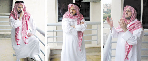 لقطات قد تبدو طريفة للبعض، بطلها الفنان السوري - اللبناني جورج وسوف مرتدياً الثوب والكوفية والشماغ السعودي على شرفة منزله في كفرون. |