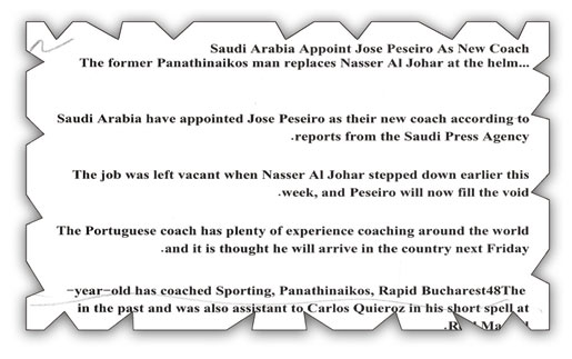 أفردت المواقع العالمية على شبكة الإنترنت خلال الساعات الماضية مساحة رئيسة لخبر تعاقد اتحاد الكرة مع المدرب البرتغالي جوسيه بيسيرو (48 عاماً) لتدريب الأخضر بدلاً من الوطني ناصر الجوهر الذي استقال مؤخراً. أبرز المواقع التي اهتمت بالخبر كان موقع (gol) العالمي الذي نقل نص خبر وكالة الأنباء السعودية وزاد عليه مستعرضاً السيرة الذاتية للمدرب الذي تنقل في عددٍ من البلدان منها إسبانيا واليونان وروسيا ورومانيا، بالإضافة إلى السعودية خلال مسيرته التدريبية.