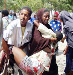 شهد الصومال أمس أعنف اشتباكات دامية بين القوات الموالية للحكومة الصومالية ومسلحين إسلاميين غداة عودة الرئيس الجديد شريف الشيخ أحمد إلى الصومال. وقال شهود إن مقاتلين مدججين بالسلاح من الحزب الإسلامي هاجموا القوات الموالية للحكومة في حي طالح جنوب مقديشو، ما أدى إلى اندلاع معارك عنيفة، وقتل ما لا يقل عن 18 مدنياً وخمسة من قوات الأمن في تلك المعارك، كما جرح أكثر من 77. وأمس أعلن الرئيس شيخ شريف قبوله لعرض الوساطة الذي تقدم به الاتحاد العالمي لعلماءالمسلمين برئاسة الداعية يوسف القرضاوي بينه وبين خصومه في الصومال. ووزع مكتب القرضاوي في الدوحة نصاً لرسالة بعث بها إلى شريف جاء فيها:(نؤكد لكم استجابتنا لدعوتكم للوحدة والحوار والمصالحة دون شروط مسبقة واستعدادنا التام للتعاون معكم وبذل كل ما بوسعنا لإنجاح مساعيكم).ويقول شريف بحسب رسالته: (نؤكد لكم أننا ما زلنا ولا نزال نمد أيدينا لإخواننا الذين خالفونا الرأي والاجتهاد، ونقول لهم تعالوا إلى تمكين الإسلام وتحقيق الحرية والسلام الذي سعينا إليه وجاهدنا من أجله حتى نستطيع قيادة هذا الشعب معاً إلى بر الأمان والبناء والتعمير والتطبيق الصحيح للشريعة الإسلامية).