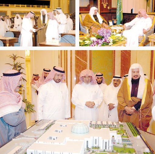 حضر اللقاء معالي نائب رئيس مجلس الشورى الدكتور بندر بن محمد حجار ومعالي مساعد رئيس المجلس الدكتور عبدالرحمن بن عبدالله البراك ومعالي الأمين العام للمجلس الدكتور محمد بن عبدالله الغامدي وكبار المسؤولين في المجلس. بعد ذلك صحب معالي الشيخ ابن حميد معالي الشيخ عبدالله آل الشيخ في جولة داخل المجلس شملت قاعات وردهات المجلس المختلفة، اطلع خلالها على استعدادات المجلس لاستقبال خادم الحرمين الشريفين الملك عبدالله بن عبدالعزيز -حفظه الله- لافتتاح السنة الأولى من الدورة الخامسة. كما استمع معاليه إلى شرح مفصل من مدير عام إدارة العلاقات العامة والإعلام الدكتور عبدالرحمن الصغير عن مشروع الحكومة الإلكترونية في المجلس (شاور)، وكذلك اطلع على مجسم التوسعة الجديدة لمقر مبنى مجلس الشورى وما ستضمه من الأقسام التي سيتفضل بتدشينهما -بإذن الله تعالى- خادم الحرمين الشريفين - حفظه الله- خلال رعايته لحفل افتتاح أعمال السنة الأولى من الدورة الخامسة لمجلس الشورى.