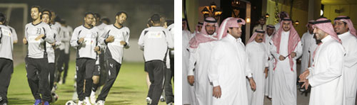 وتواجد في المران أعضاء شرف النادي الأمير عبدالرحمن بن تركي والأمير خالد بن عبدالعزيز بن فهد والأمير سلطان بن فهد بن ناصر, وتجول أعضاء الشرف في منشآت النادي الحديثة ومنها المتحف التاريخي الذي سيدشن قريباً، وعقدوا اجتماعاً ودياً بخالد البلطان. وكان الرئيس الشبابي قد وقف على آخر استعدادات الفريق من خلال الاجتماع الخاص الذي عقده مع المدير الفني انزو هيكتور.
