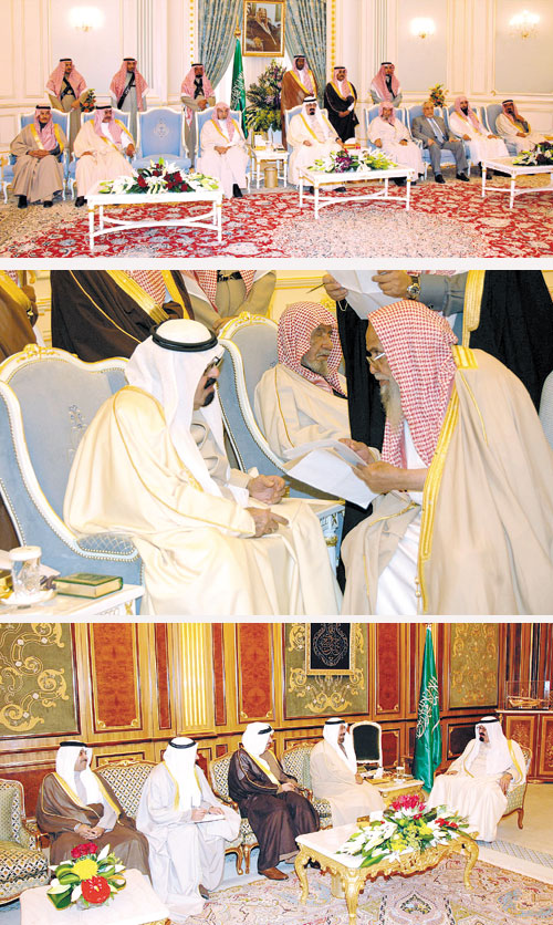 كما استقبل خادم الحرمين الشريفين الملك عبدالله بن عبدالعزيز آل سعود - حفظه الله - في الديوان الملكي بقصر اليمامة أمس، أصحاب السمو الملكي الأمراء وكبار المسؤولين وقادة وضباط الحرس الملكي. كما استقبل - أيده الله - جمعاً من المواطنين الذين قدموا للسلام عليه وتهنئته بسلامة الوصول إلى الرياض.