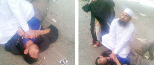 وفي غمرة الانزعاج من الواقعة بحث الوالد سريعاً في الجوار، وفي ذلك الوقت كان الوحش البشري يجلس بالقرب من أحد المحلات بالحي، وأدرك سريعاً أن الشخص القادم نحوه يقصده، ومن ثم فقد حاول الهرب، لكن الأب المشحون بثورة غضب تمكن من اللحاق به والقبض عليه بمساعدة أهل الحي.