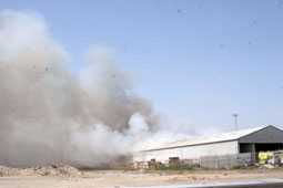 وأضاف المقدم الدوسري: إن الحريق التهم مواد مختلفة كمواد أولية للأعلاف وهي بذرة زيت النخيل وقشرة فول الصويا إلى جانب مجموعة من أعشاب الكللا (مواد تخلط كمواد أولية للأعلاف) مشيرا إلى أن الكمية الموجودة بالمستودع تبلغ كميتها حوالي (20) ألف طن.