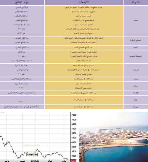 ويعول الكثير من المراقبين على المصانع الجديدة التي ستبدأ إنتاجها قريبا في كل من شركات (بترو رابغ، ينساب، الصحراء، كيان) بالإضافة إلى التوسعات التي قامت بها شركات (سابك، التصنيع، المجموعة السعودية) في أن تكون داعما للشركات على تجاوز الأزمة وتحسن مستوى الربحية بدأ من الربع الأول لهذا العام، خصوصا وأن اللقيم (البروبان، البوتان) التي تحصل عليه هذه الشركات من أرامكو بسعر منافس قد تم تخفيض أسعار متزامنة مع انخفاض أسعار النفط.
