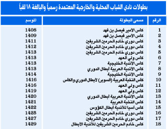 كما أن الفريق الشبابي حقق العام الماضي بطولة كأس خادم الحرمين الشريفين للأبطال ليضيف الرقم 18 في سجله الشرفي.