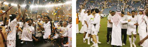 * تبادل نجوم الفريقين باقات الورود قبل بداية اللقاء واتفق الجميع على إهدائها للمعاقين.