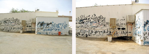 الكتابة على الجدران بدأت ولم تنته ولا تزال في ازدياد حتى أنك لا تجد جداراً يخلو من الكتابات وخصوصاً جدران الدوائر الحكومية والملاعب والمدارس والمحطات والاستراحات الخارجية والأسوار الطويلة مما جعلها مشوهة من كثرة ما يكتب عليها من كتابات لا تعبر عن معنى يستفيد منه القارئ، وبعضها بخط جميل ومعظمها شخابيط لا يمكن قراءتها إلا بصعوبة. ومع ازدياد هذه الظاهرة التي أزعجت الكثير إلا أن الحلول عاجزة مع عدم البحث عن أسباب المشكلة، ومن المفترض أن يبدأ العلاج من المدرسة وينتهي بأماكن مخصصة للشباب بالكتابة فيها بشكل منظم قد يفيدهم تربوياً بعبارات هادفة، إضافة الى تدريبهم على الخط الجيد، ومن هنا نقوِّم السلوك الخاطئ ونحوله الى تربية هادفة ومفيدة.