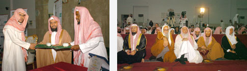 بعد ذلك قام المفتي بتكريم الطلاب المتفوقين والمتميزين ممن حفظوا كتاب الله كاملاً ومن حققوا نتائج متميزة في حفظ القرآن الكريم وعددهم (119) طالباً.. ثم تكريم الجهات الداعمة للمركز وفي مقدمتهم الشيخ عبد العزيز بالبيد وشركة الناصر ومؤسسة الشدي ومؤسسة الصفرات ومؤسسة الفيز للتجارة ومؤسسة الفالح ومؤسسة العويدان ومؤسسة خلف الجهني ومؤسسة الشيخ محمد بن صالح بن سلطان الخيرية ومؤسسة الشيخ سليمان الراجحي الخيرية وشركة المهنا ومؤسسة النجدين وشركة العجو والأستاذ إبراهيم السعود والأستاذ مروان المطلق ومكتب المنصور للاستشارات الهندسية.