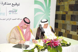 وقّع صاحب السمو الملكي الأمير عبد العزيز بن عبد الله بن عبد العزيز آل سعود مستشار خادم الحرمين الشريفين رئيس (صندوق المئوية) مع الدكتور عبد الرحمن الزامل رئيس مجلس إدارة مجموعة الزامل القابضة اتفاقية تعاون استراتيجية الاثنين الماضي في المقر الرئيس للصندوق، تقتضي تخصيص