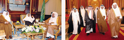 كما استقبل معالي رئيس مجلس الشورى الدكتور آل الشيخ معالي وزير الدولة عضو مجلس الوزراء الدكتور مساعد بن محمد العيبان، ومعالي وزير الدولة عضو مجلس الوزراء الدكتور مطلب النفيسة، اللذين قدما لمعاليه التهنئة بمناسبة الثقة الملكية بتعيينه رئيساً للشورى.