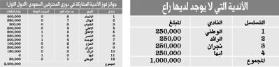 أعلن ذلك المدير التنفيذي لهيئة دوري المحترفين محمد بن عبدالله النويصر الذي أوضح أن إجمالي المكافآت والمساهمات التي اعتمدها الأمير نواف بن فيصل لأندية دوري المحترفين بلغت 5.100.000 ريال منذ بداية الخطة قبل ثلاثة أشهر وتم تسليمها لأندية دوري المحترفين.
