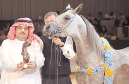 توج صاحب السمو الشيخ محمد بن راشد آل مكتوم نائب رئيس دولة الإمارات العربية المتحدة رئيس مجلس الوزراء حاكم دبي الفائزين في بطولة دبي الدولية السادسة للجواد العربي التي اختتمت فعالياتها السبت بعد رحلة منافسة استمرت ثلاثة أيام في قاعة مركز دبي التجاري الدولي للمؤتمرات والمعارض، بمشاركة 392 خيلا من أفضل