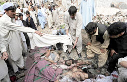قتل مهاجم انتحاري 37 شخصا عندما فجر نفسه في مسجد باكستاني مكتظ بالقرب من الحدود الافغانية أمس حسبما اعلن مسؤولون حكوميون، وجاء الهجوم قبل ساعات من إعلان الرئيس الأمريكي باراك أوباما عن استراتيجية جديدة للحرب في أفغانستان وتنامى عنف المتشددين في باكستان منذ منتصف عام 2007