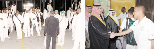 كما أجرى صاحب السمو الملكي الأمير نواف بن فيصل بن فهد بن عبدالعزيز نائب الرئيس العام لرعاية الشباب نائب رئيس الاتحاد السعودي لكرة القدم رئيس لجنة المنتخبات اتصالاً مماثلاً برئيس بعثة المنتخب بإيران محمد النويصر اطمئن فيه سموه على كل أعضاء بعثة المنتخب، كما عبر سموه عن تقديره للجهود التي تبذلها الأجهزة الإدارية والفنية واللاعبون في مرحلة إعداد المنتخب لهذه التصفيات الآسيوية، وبصفة خاصة لمباراة الغد مع منتخب إيران؛ انطلاقاً من حرص الجميع على تحقيق نتيجة إيجابية تساهم في ضمان المنافسة للتأهل إلى نهائيات كأس العالم 2010م عن هذه المجموعة الآسيوية، وذلك انطلاقاً من الحرص على مواصلة الإنجازات التي حققها على الصعيدين القاري والدولي، منوهاً بالمتابعة والاهتمام الذي تجده منتخبات المملكة بصفة عامة والمنتخب الأول بصفة خاصة من سمو الأمير سلطان بن فهد بن عبدالعزيز انطلاقاً من حرص سموه على أهمية ظهور منتخب المملكة بالمظهر المشرف مستوىً ونتيجةً. كما طالب سموه الجميع بمضاعفة الجهود لتحقيق النتائج المرجوة، مشيداً سموه بما يبذله كل أعضاء المنتخب في هذا المجال.