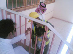 أنقذت جهود الدفاع المدني طفلة عالقة في حديد الدرج في مدرسة ابتدائية للبنات في ظلم، وكانت الطفلة وهي ابنة حارس المدرسة، أدخلت رأسها أثناء لهوها في الحديد المثبت على جوانب الدرج، وقد حاولت وآخرون إخراج رأسها لكن دون جدوى، ومن ثم تم استدعاء فرق الدفاع المدني التي باشرت الموقع بقيادة وكيل رقيب فريح العتيبي، وتم قص الحديد وإنقاذ الطفلة.