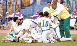 عزز منتخبنا الأول لكرة القدم حظوظه في بلوغ نهائيات كأس العالم بجنوب أفريقيا بعد فوزه أمس على نظيره الإماراتي (3-2) في الجولة السابعة من منافسات المجموعة الثانية في الدور الحاسم من تصفيات آسيا المؤهلة إلى المونديال، وسجل عبده عطيف (4) من ركلة جزاء، وفارس جمعة (70) خطأ في مرمى منتخب بلاده، ونايف هزازي