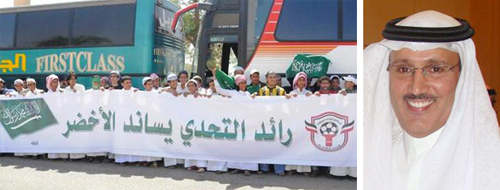 ساندت جماهير نادي الرائد المنتخب الوطني الأول لكرة القدم في لقائه ليلة البارحة أمام ضيفه وشقيقه منتخب الإمارات العربية في لقاء الإياب الذي أقيم على درة الملاعب إستاد الملك فهد بالرياض ضمن مباريات التصفيات الآسيوية المؤهلة لكأس العالم 2010 والتي ستقام في جنوب إفريقيا.. بعد أن تكفل عضو شرف الرائد الداعم الشيخ فهد بن محمد المطوع بتسيير أربع حافلات تقل الجماهير الرائدية من مدينة بريدة مع تكفله بتأمين كافة المستلزمات من شالات وفانلات وأعلام سعودية مع لافتات كبيرة توضع على جنبات الملعب للمساهم في تزيين مدرجات الدرة تحفيزاً لنجوم الأخضر إلى جانب تكفله بالوجبات الثلاث.