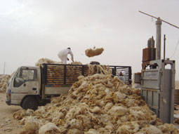 ألقت الأزمة الاقتصادية العالمية التي يعيشه العالم هذه الأيام بظلالها على أسعار صوف الأغنام بمحافظة حفر الباطن, وتراجعت لأكثر من50% هذا الموسم. وقال شهاب أحمد تاجر أصواف في المحافظة أن أسعار طن الصوف العام الماضي وصل إلى (2400) ريال قبل ان يتراجع ويصل سعره إلى 1100 ريال حاليا. وأضاف إن مصانع تصدير الصوف بمحافظة حفر الباطن تشتري طن الصوف سواء من التجار وأصحاب الأغنام بسعر (1100) ريال ليتم تنظيف الصوف بغسله بمكائن خاصة أو تصديره خام لدول من أهمها الباكستان لتقوم المصانع بتصنيعه على هيئة سجاد أو ملابس.