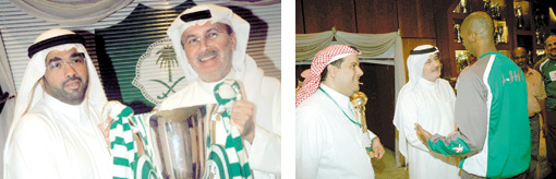 هنأ صاحب السمو الملكي الأمير سلطان بن فهد بن عبد العزيز الرئيس العام لرعاية الشباب وصاحب السمو الملكي الأمير نواف بن فيصل بن فهد بن عبدالعزيز نائب الرئيس العام لرعاية الشباب رئيس مجلس إدارة النادي الأهلي عبد العزيز العنقري وذلك بمناسبة حصول فريق كرة الطائرة بالنادي على الكأس والمركز الأول في البطولة