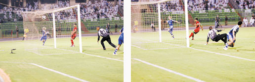 وعند الدقيقة 7 تمكن خالد راضي من إنقاذ مرماه من هدف محقق بعد إبعاده لكرة ناصرالشمراني إلى ركنية.