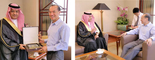 وجرى خلال اللقاء مناقشة موضوعات شملت الأمور السياسية والاجتماعية والتعليمية والثقافية ذات الاهتمام المشترك وذلك في إطار تعزيز وتنامي العلاقات الثنائية والتعاون الوثيق بين المملكة العربية السعودية وجمهورية سنغافورة.. وقدم له هدية ذات طابع تراثي عن المملكة العربية السعودية كتعبير عن الصداقة التي تربط البلدين الصديقين.