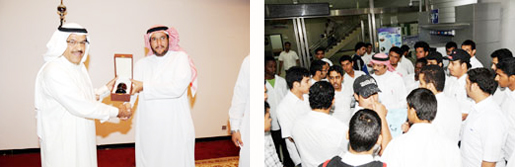 ثم توجّه الدكتور العسكر بخطاب أبوي إلى أبنائه المتدربين موضحاً لهم بعض الحقوق مثل: تكوين مجالس للمتدربين في الأقسام لمناقشة مهامهم واحتياجاتهم ينتج عنه مجلس لمتدربي الكلية ورئيس مجلس المتدربين عضو في مجلس الكلية للرقي بالمتدرب إلى أعلى الدرجات في النواحي الرياضية والثقافية والتدريبية وغيرها.. كما وجّه العميد بتكوين عدد من الجمعيات لمتدربي الكلية كجمعية حقوق الإنسان والتدخين والمخدرات وصديق المرور وأصدقاء المرضى وذوي الاحتياجات الخاصة، ومن ضمن الإستراتيجية المستقبلية إلغاء شبح الامتحانات وترك القرار للأقسام لاتخاذ الإجراءات اللازمة للنتائج، كما أضاف بأن تكون السنة الأولى دورة تأهيلية للغة الإنجليزية حيث إن المتدرب يستمر في الكلية بعد اجتياز تلك الدورة، وقبل الختام وجّه بوضع صناديق اقتراحات وشكاوى في جميع أقسام الكلية وإداراتها.