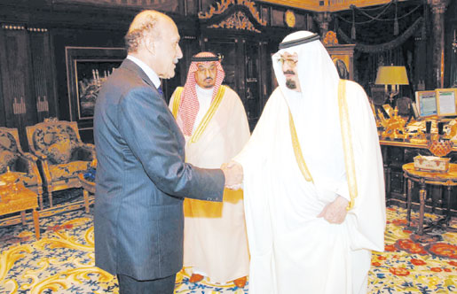 وقام بنقل الرسالة لخادم الحرمين الشريفين رئيس المخابرات المصرية الأستاذ عمر سليمان خلال استقبال الملك المفدى له في قصره بالرياض بعد ظهر أمس. كما نقل معاليه للملك المفدى تحيات وتقدير أخيه فخامة الرئيس محمد حسني مبارك فيما حمله خادم الحرمين الشريفين تحياته وتقديره لفخامته. حضر الاستقبال صاحب السمو الملكي الأمير سعود الفيصل وزير الخارجية وصاحب السمو الملكي الأمير مقرن بن عبدالعزيز رئيس الاستخبارات العامة.