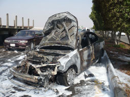 أدى حادث مروري بين سيارة صغيرة مع تريلا محملة بكميات كبيرة من الديزل إلى اندلاع النيران في السيارة، وقد نجا السائق ومن يرافقه من خطر كبير كاد أن يودي بحياتهما في مدخل مدينة جازان الشرقي.